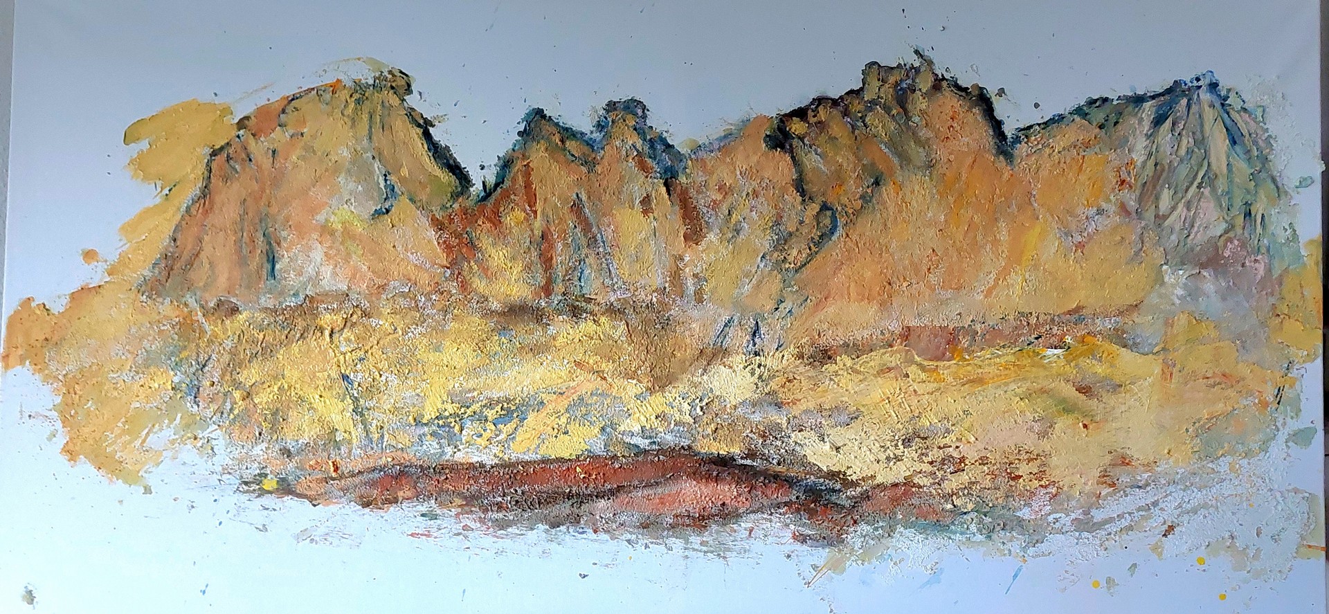 Ich arbeite an einer Reihe von Bildern, die sich intensiv mit abstraktem Expressionismus beschäftigen. Bei dem Material, das ich verwende, ist Acryl die Grundierung, die ich mit Bitumen, Rauputz und Sand oder oxidierten Mineralien bedecke. Die Arbeit mit verschiedenen Materialien verleiht den Bildern eine spezielle Oberfläche, die das Licht verschluckt und Strukturen betont. Das Alles soll den Betrachter dazu anregen, seiner Fantasie freien Lauf zu lassen, neue Inhalte zu finden und die Kommunikation anzuregen, wobei jeder Betrachter, je nach seiner eigenen Geschichte, eine andere Assoziation hat.